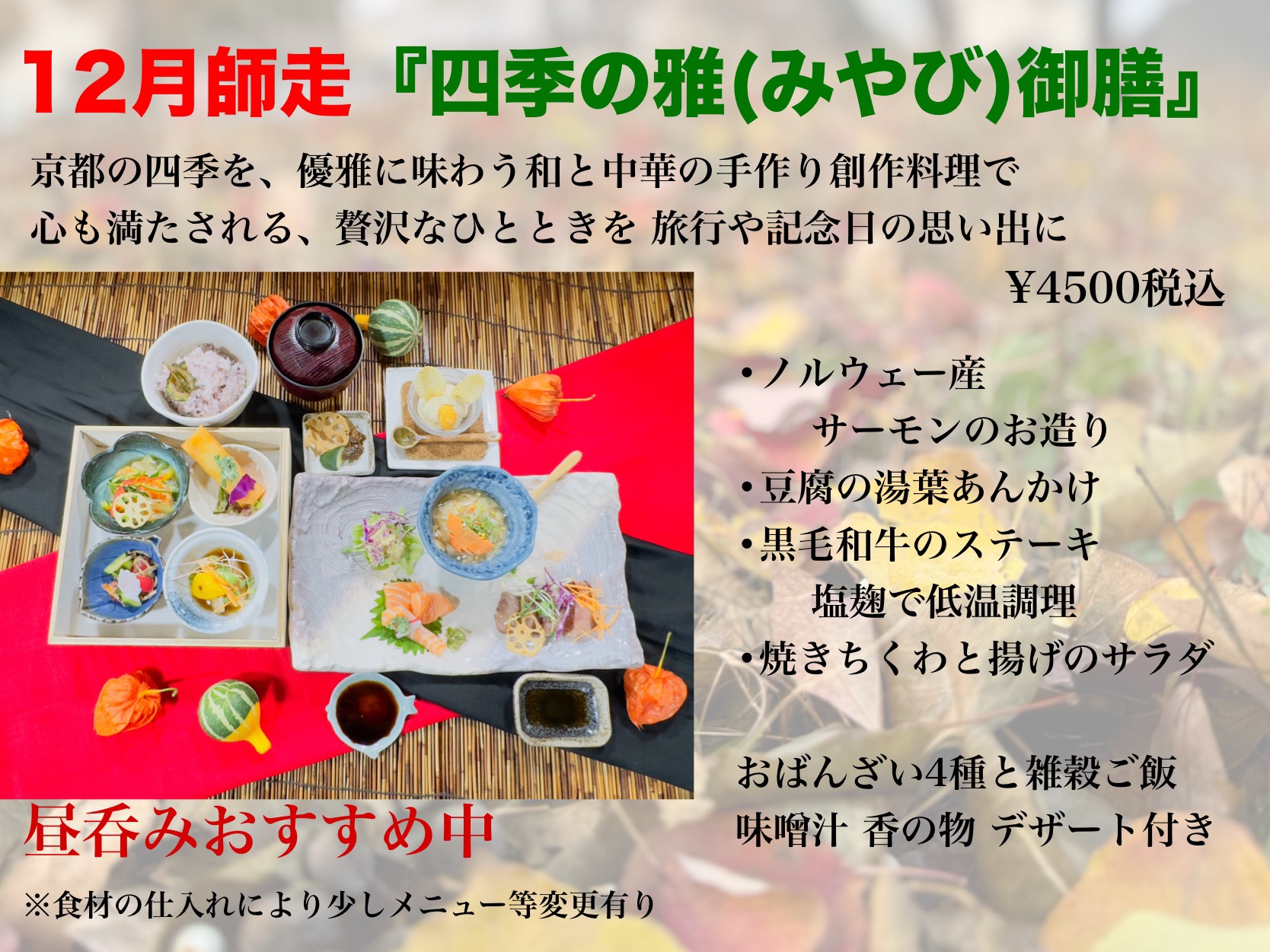 京都の四季を、優雅に味わう和と中華の手作り創作料理で。